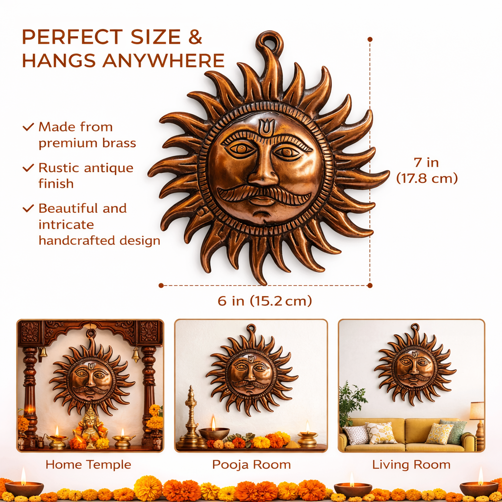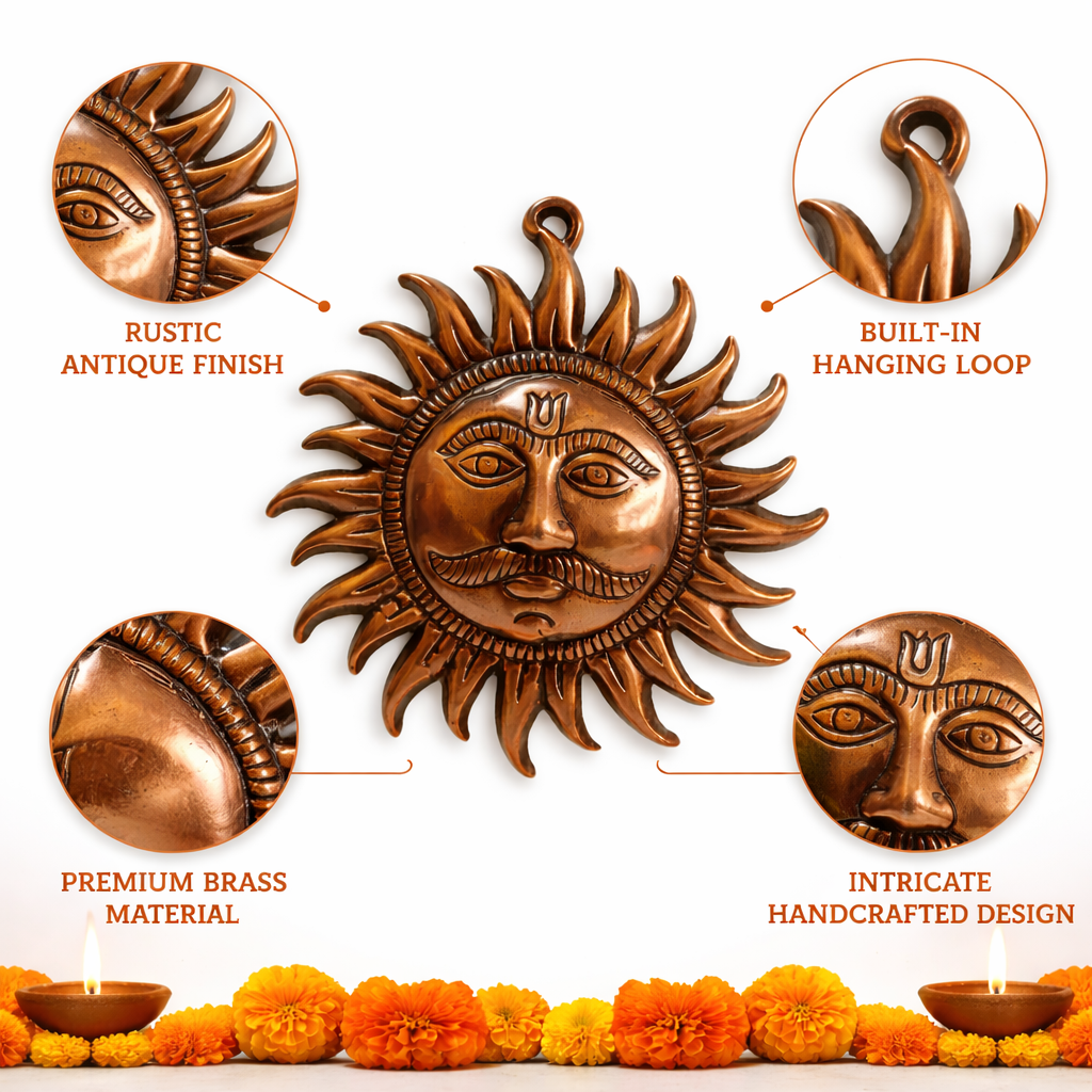 This sun wall décor is ideal for home temples, pooja rooms, living rooms, or entrance walls, adding a divine and aesthetic touch to your surroundings. According to Vastu, the sun symbolizes energy, prosperity, and success, making it a perfect addition to your home.