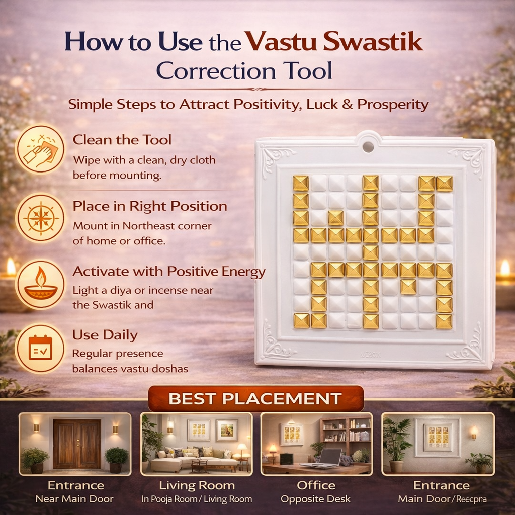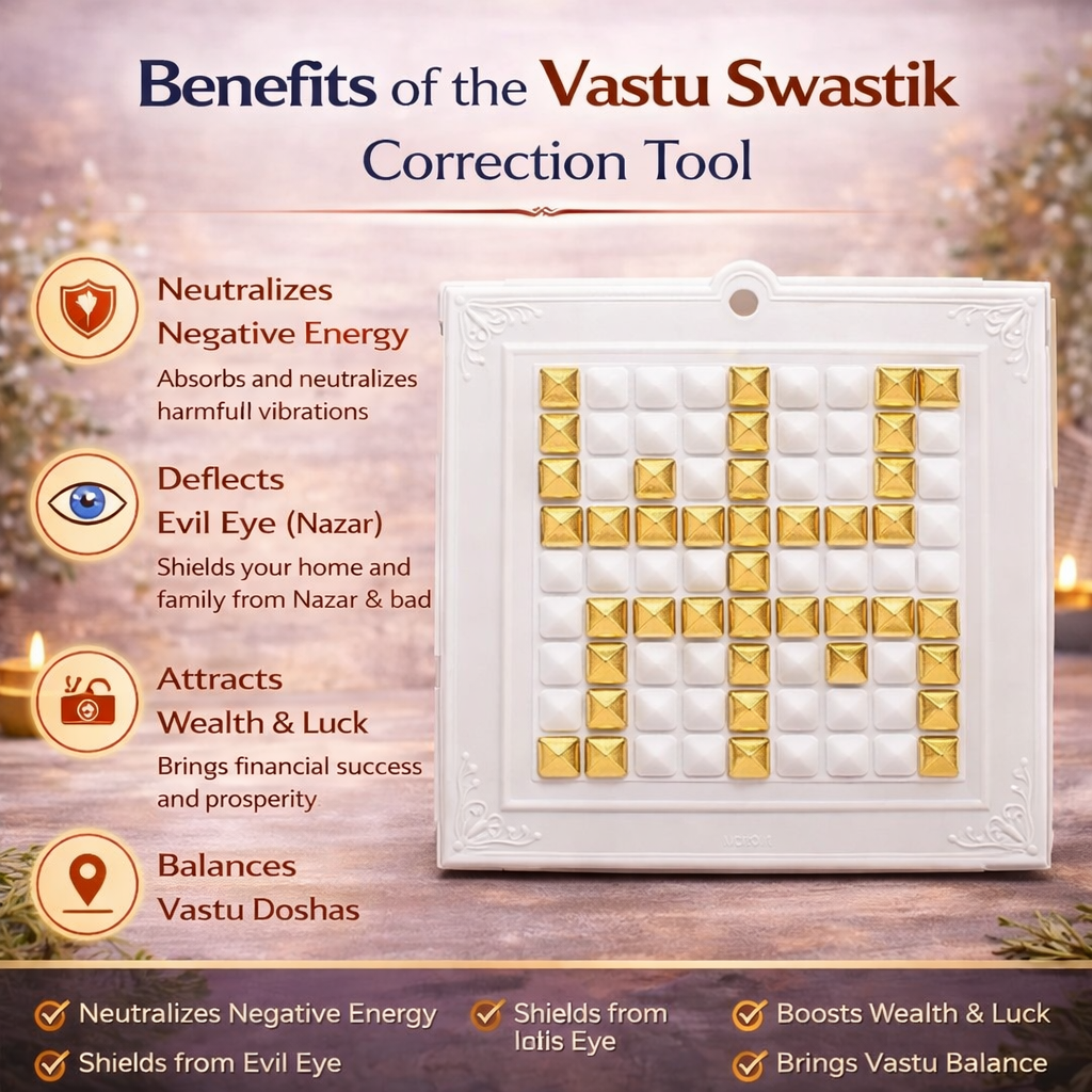 This Vastu tool works by neutralizing negative energy and enhancing positive vibrations, making it ideal for placement at the main entrance, living room, pooja room, office, or workplace.