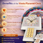 This Vastu clock works by neutralizing negative energy and enhancing positive vibrations, making it ideal for improving harmony and success in your surroundings. It also provides protection from evil eye (Nazar) and supports wealth attraction and prosperity.